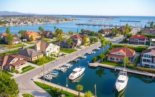 Charming waterfront neighborhoods with a marina views and peaceful streets.